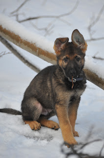 Idag den 9 februari kóm Theos pappa Tiger hit. Han heter Heratorpets Tiger och kommer från samma Monika som vad jag gör. Han är stooor och han är polishund.